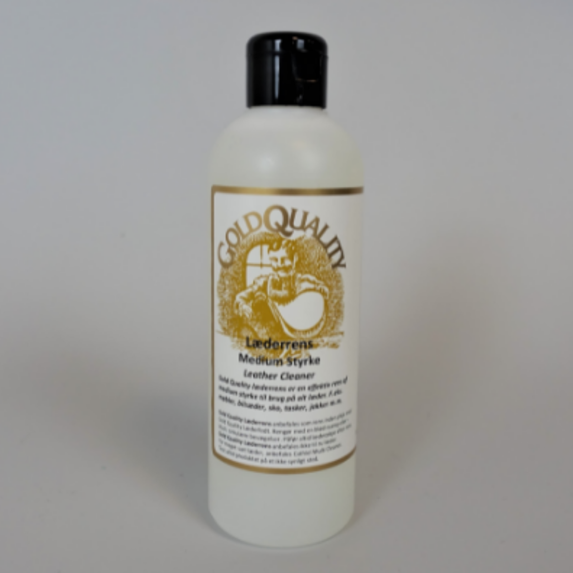 Gold Quality læderrens er en effektiv rens af medium styrke til brug på alt læder som lædermøbler, bilsæder, læderjakker, sko og andet læder.